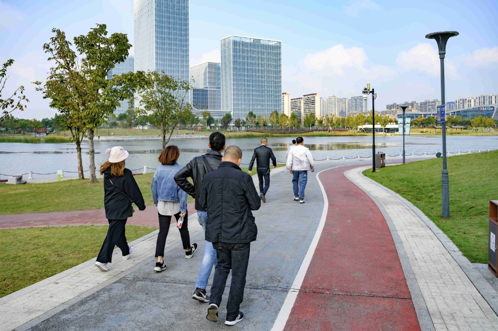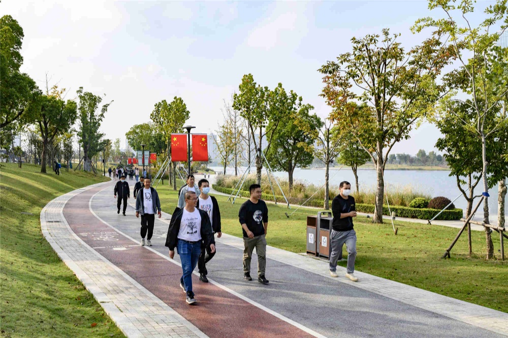 秋風(fēng)送爽,秋意盎然,聞著秋天的味道、聽(tīng)著秋天的聲音,我們出發(fā)啦!隨著行進(jìn)口號(hào)響起,環(huán)湖綠道上頓時(shí)熱鬧了起來(lái)。一路上,員工們你追我趕向前沖!有勁走的,有小步快速行走的,也有達(dá)人一路小跑的,雖然不是比賽,雖非運(yùn)動(dòng)員標(biāo)準(zhǔn)動(dòng)作,但大家盡情體驗(yàn)著快樂(lè)、感受著美景,個(gè)個(gè)臉上洋溢著興奮與喜悅。行進(jìn)隊(duì)伍一路揮灑的熱情為輕紗薄霧中的秀湖平添了一道獨(dú)特而亮麗的動(dòng)感風(fēng)景線(xiàn)。